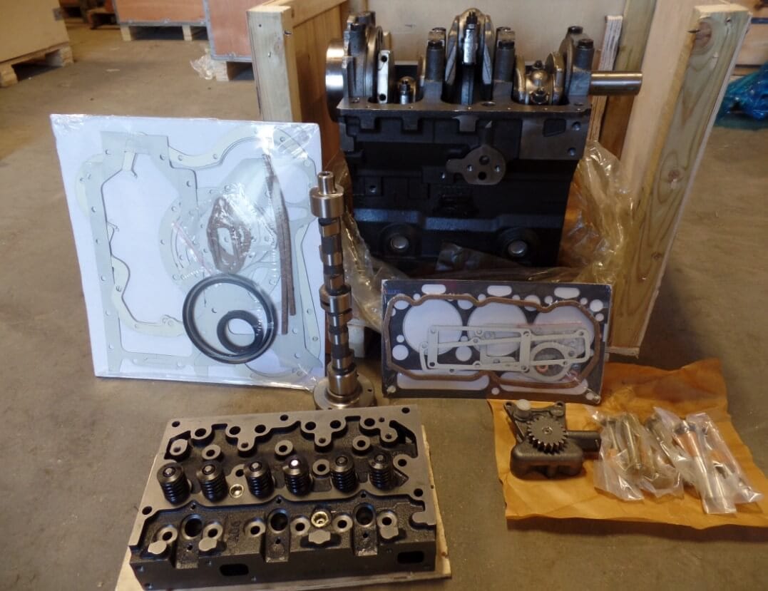 | Dalinis variklio komplektas, įskaitant variklio bloką, alkūninį veleną, stūmoklius ir švaistiklius. | Variklio komplektas apimantis viską, kas yra Short Block, plius cilindro galvutė(-ės), paskirstymo velenas ir vožtuvų mechanizmas. |